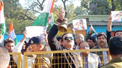 शहडोल में कांग्रेस ने मंत्री कैलाश विजयवर्गीय के बयान के विरोध में घंटानाद कर जताया विरोध