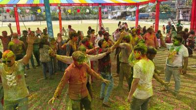 भीलवाड़ा में चंद्र ग्रहण के साये में मनी धुलंडी, कई जगह उत्साह तो कई स्थानों पर दिखी सुस्ती