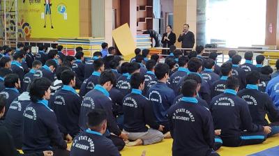 TT नगर स्टेडियम में वर्ल्ड मेडिटेशन डे पर छात्रों को कराया गया प्राणायाम और ध्यान