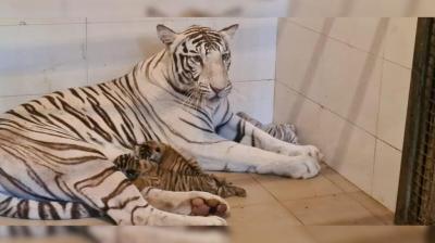 ग्वालियर जू में खुशखबरी: बाघनी ‘मीरा’ ने 2 रॉयल बंगाल और 1 सफेद शावक को जन्म दिया