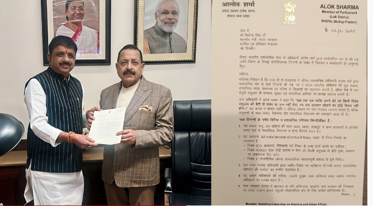 केंद्रीय मंत्री जितेंद्र सिंह को लिखे पत्र में सांसद ने ये मांग की कि IAS संतोष वर्मा के विरूद्ध तत्काल विभागीय जांच की जानी चाहिए. जांच लंबित रहने तक उन्हें निलंबित किया जाना चाहिए, जिससे वे पद का दुरुपयोग ना कर सकें. इसके साथ ही जांच में सत्यता पाई जाती है तो बर्खास्तगी जैसी सख्त अनुशासनात्मक कार्रवाई की जानी चाहिए. सोशल मीडिया साइट एक्स पर पोस्ट करके सांसद आलोक शर्मा ने लिखा कि आज (मंगलवार) संसद भवन में केंद्रीय कार्मिक, लोक शिकायत और पेंशन मंत्रालय में राज्य मंत्री डॉ. जितेंद्र सिंह जी से भेंट कर भोपाल में विगत दिनों आईएएस संतोष वर्मा द्वारा ब्राह्मण समाज की बेटियों के बारे में दिए गए बयान पर संज्ञान लेने और दोषी पाए जाने पर संतोष वर्मा के खिलाफ सख्त अनुशासनात्मक कार्रवाई करने की शिकायत की।