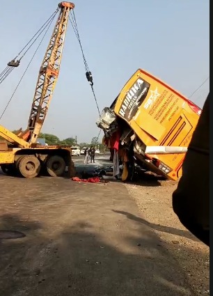 गुना में बस हादसा: लखनऊ-इंदौर मार्ग पर दुर्घटना, 1 की मौत, कई घायल
