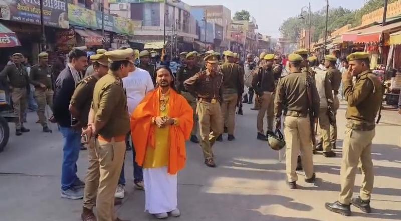 कौशल किशोर को श्रीकृष्ण जन्मभूमि गेट-1 पर पुलिस ने हिरासत में लिया