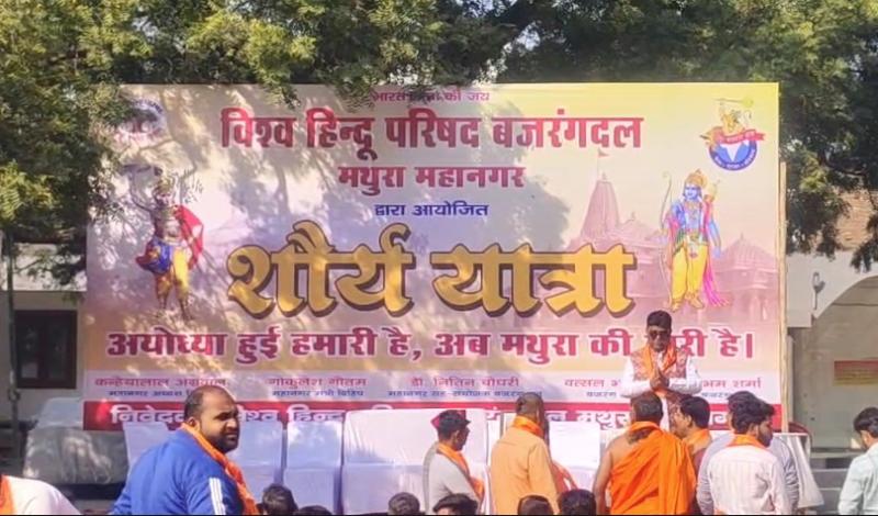 मथुरा में विश्व हिंदू परिषद की शौर्य यात्रा, आचार्य देवकीनंदन ठाकुर ने दिया संबोधन