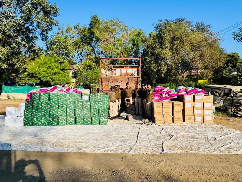 मंडलेश्वर, खरगोन। खरगोन जिले की थाना मंडलेश्वर पुलिस ने अवैध शराब के विरुद्ध बड़ी कार्रवाई करते हुए 4365 लीटर अवैध शराब और एक ट्रक सहित कुल 41 लाख 70 हजार 600 रुपए का माल जप्त किया। इस मामले में ट्रक चालक, राजस्थान निवासी दलपत को गिरफ्तार किया गया है।अतिरिक्त पुलिस अधीक्षक खरगोन शकुंतला रुहल ने बताया कि थाना प्रभारी दीपक यादव को मुखबिर से सूचना मिली कि एक व्यक्ति गुजरात पासिंग टाटा ट्रक में पशु आहार के कट्टों के नीचे बड़ी मात्रा में अवैध शराब की पेटियां रखकर मंडलेश्वर-धामनोद मार्ग से गुजरने वाला है। सूचना मिलने पर पुलिस ने तुरंत टीम का गठन कर मार्ग पर घेराबंदी की और ट्रक को रोका।ट्रक चालक से नाम पूछने पर उसने अपना नाम दलपत निवासी बड़ारखेड़ा, जिला चितौड़गढ़, राजस्थान बताया। पुलिस टीम द्वारा ट्रक की जांच करने पर पशु आहार के कट्टों के नीचे अवैध शराब पाई गई। पुलिस ने शराब को विधिवत जप्त कर आरोपी को हिरासत में लिया।इस कार्यवाही का मार्गदर्शन एसडीओपी श्वेता शुक्ला ने किया और यह कार्रवाई थाना प्रभारी दीपक यादव के नेतृत्व में हुई। पुलिस थाना मंडलेश्वर टीम ने इस ऑपरेशन में महत्वपूर्ण योगदान दिया।