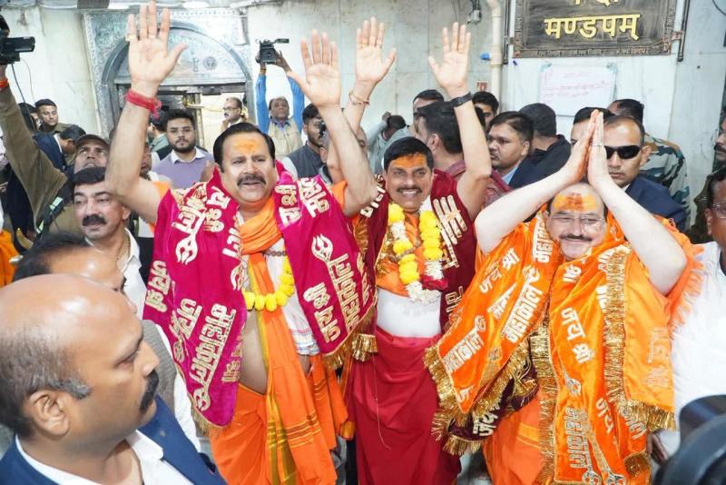 मुख्यमंत्री डॉ. मोहन यादव व केंद्रीय मंत्री जे.पी. नड्डा ने किए महाकाल दर्शन, अन्नक्षेत्र में बांटी प्रसादी