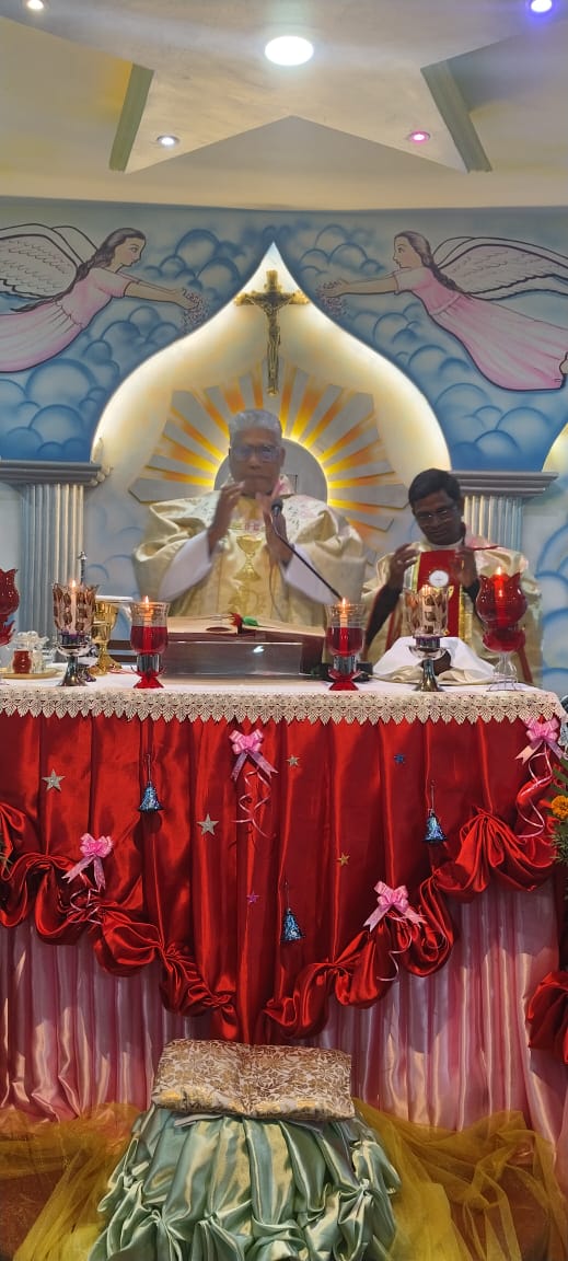 भिंड। सेंट माइकल चर्च में 24 दिसंबर की आधी रात प्रभु यीशु मसीह के जन्मोत्सव क्रिसमस का भव्य एवं श्रद्धामय आयोजन किया गया। कड़ाके की ठंड के बावजूद मसीही समाज के लोगों में विशेष उत्साह देखने को मिला। इस अवसर पर 100 से अधिक श्रद्धालु चर्च में एकत्रित होकर प्रार्थना सभा में शामिल हुए।ग्वालियर धर्मप्रांत के फादर हर्षल ने अपने संदेश में कहा कि प्रभु यीशु का इस धरती पर आगमन मानवता के लिए प्रेम, करुणा और शांति का संदेश लेकर आया है। उन्होंने कहा कि वर्तमान समय में यीशु मसीह के विचारों को अपनाकर ही समाज में आपसी भाईचारा, सद्भाव और शांति स्थापित की जा सकती है।कार्यक्रम के दौरान फादर स्टेनिलस ने विशेष प्रार्थना कर देश, समाज और विश्व में शांति की कामना की। उन्होंने सभी श्रद्धालुओं को क्रिसमस की शुभकामनाएं देते हुए सेवा, त्याग और प्रेम के मार्ग पर चलने का आह्वान किया।चर्च के सदस्य स्टेनी डी सिल्वा और टॉम जॉस ने बताया कि समारोह का समापन आपसी बधाइयों और शुभकामनाओं के साथ किया गया। चर्च परिसर में की गई आकर्षक क्रिसमस सजावट, मोमबत्तियों की रोशनी और भजनों ने पूरे वातावरण को आध्यात्मिक और उल्लासपूर्ण बना दिया।