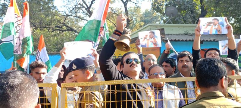 शहडोल में कांग्रेस ने मंत्री कैलाश विजयवर्गीय के बयान के विरोध में घंटानाद कर जताया विरोध