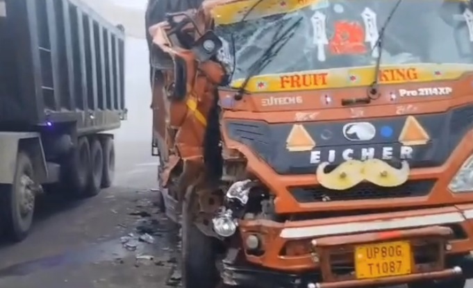 टीकमगढ़: घने कोहरे में दो ट्रकों की आमने-सामने भिड़ंत, दोनों चालक घायल