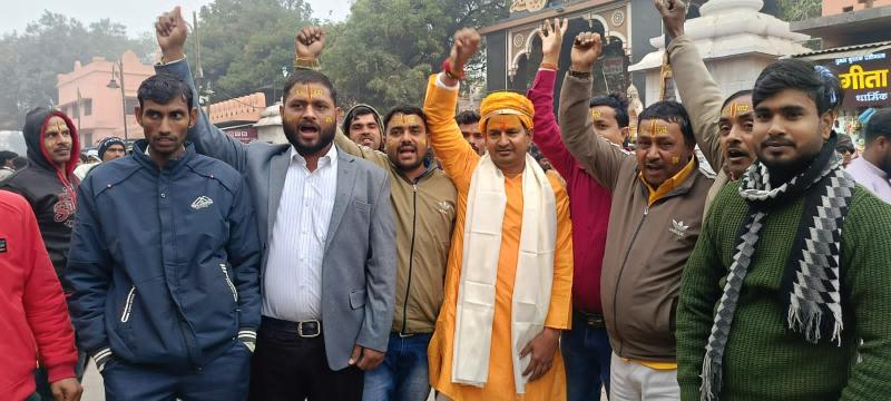 राष्ट्रीय स्वयंसेवक संघ के सरसंघ चालक डॉ. मोहन भागवत के ब्रजभूमि वृंदावन प्रवास के दौरान हिंदू राष्ट्र की मांग को लेकर गतिविधियां तेज होती नजर आ रही हैं। इसी क्रम में श्रीकृष्ण जन्मभूमि–ईदगाह विवाद मामले में मुख्य हिंदू पक्षकार दिनेश फलाहारी महाराज ने आज संघ प्रमुख को अपने खून से पत्र लिखकर भारत को हिंदू राष्ट्र घोषित करने की मांग की है।दिनेश फलाहारी महाराज ने पत्र के माध्यम से कहा है कि 125 करोड़ हिंदुओं की भावनाओं को ध्यान में रखते हुए भारत को हिंदू राष्ट्र बनाया जाना चाहिए। उन्होंने अपने पत्र में यह भी उल्लेख किया कि जिन देशों में मुस्लिम आबादी तेजी से बढ़ी है, वहां अस्थिरता, हिंसा और लोकतांत्रिक संस्थाओं पर दबाव बढ़ने के उदाहरण देखने को मिले हैं। उन्होंने आशंका व्यक्त की कि यदि भारत को हिंदू राष्ट्र नहीं बनाया गया तो आने वाले वर्षों में हिंदू समाज अल्पसंख्यक स्थिति में आ सकता है।पत्र में यह भी कहा गया है कि जनसंख्या नियंत्रण कानून, गौ-हत्या निषेध, मठ-मंदिरों का संरक्षण जैसे विषय हिंदू राष्ट्र की परिकल्पना के साथ प्रभावी रूप से लागू हो सकते हैं। फलाहारी महाराज ने यह भी दावा किया कि इससे राष्ट्रीय स्वयंसेवक संघ के अखंड भारत और विश्व गुरु भारत की अवधारणा को बल मिलेगा।इस पत्र को लेकर ब्रजभूमि के कई प्रमुख संतों ने समर्थन व्यक्त किया है। समर्थन करने वालों में महामंडलेश्वर रामदास जी महाराज, महामंडलेश्वर स्वामी कृष्णानंद जी महाराज, कुंज बिहारी पीठाधीश्वर इंदुलेखा, मधुसूदन दास महाराज, अतुल कृष्ण दास जी महाराज, अनमोल दास जी महाराज सहित अन्य संत शामिल हैं।संत समाज ने कहा कि यह पत्र हिंदू समाज की भावनाओं की अभिव्यक्ति है और इसे शांतिपूर्ण व संवैधानिक दायरे में रखकर सुना जाना चाहिए।फिलहाल प्रशासनिक स्तर पर इस पत्र या घटनाक्रम को लेकर कोई आधिकारिक प्रतिक्रिया सामने नहीं आई है।