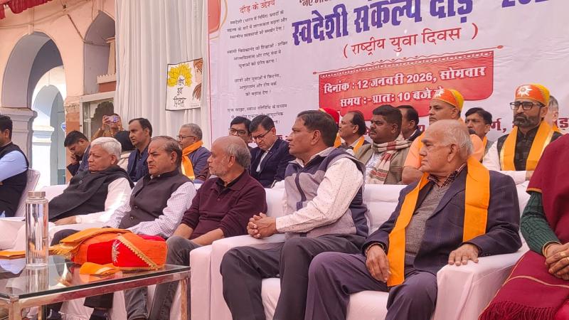 स्वामी विवेकानंद जयंती के अवसर पर भीलवाड़ा में राष्ट्रीय युवा दिवस बड़े उत्साह के साथ मनाया गया। इस अवसर पर स्वदेशी दौड़ का आयोजन किया गया। कार्यक्रम के दौरान स्वदेशी अपनाने को लेकर सांसद दामोदर अग्रवाल ने स्कूली छात्रों को शपथ दिलाई।यह कार्यक्रम राजकीय उच्च माध्यमिक विद्यालय परिसर में आयोजित किया गया, जहां सांसद दामोदर अग्रवाल एवं विधायक अशोक कोठारी ने हरि झंडी दिखाकर दौड़ को रवाना किया। दौड़ में लगभग 1200 स्कूली छात्र-छात्राओं ने भाग लिया।दौड़ शहर के विभिन्न मार्गों से होते हुए पुनः राजेंद्र मार्ग स्थित स्कूल परिसर में समाप्त हुई। इस अवसर पर उपस्थित सभी वक्ताओं ने युवाओं से स्वदेशी अपनाने और स्वामी विवेकानंद के विचारों को अपने जीवन में उतारने का आह्वान किया।