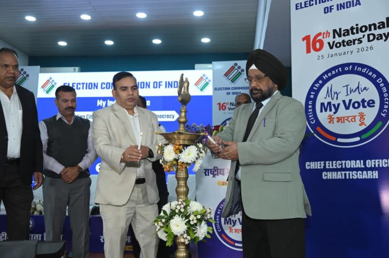 रायपुर : 16वें राष्ट्रीय मतदाता दिवस के अवसर पर आज इंदिरा गांधी कृषि विश्वविद्यालय, रायपुर स्थित विवेकानंद सभागार में भव्य राज्य स्तरीय समारोह का आयोजन किया गया। कार्यक्रम का शुभारंभ मुख्य अतिथि न्यायमूर्ति इंदर सिंह उबोवेजा, प्रमुख लोकायुक्त, छत्तीसगढ़ लोक आयोग द्वारा दीप प्रज्ज्वलन कर किया गया। इस अवसर पर उन्होंने कार्यक्रम स्थल पर आयोजित मतदाता जागरूकता प्रदर्शनी का उद्घाटन कर उसका अवलोकन भी किया।