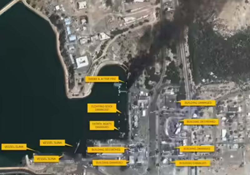 मीडिया रिपोर्ट के मुताबिक तस्वीरों में रात में ली गई बंदर अब्बास नेवस बेस की स्थिति का पता चलता है। इस बेस पर ईरानी नेवी का मुख्य हेडक्वार्टर और इसके कई सबसे काबिल जहाज और सबमरीन तैनात रहते हैं। तस्वीरों में नेवल बेस के ज्यादातर हस्से में घना काला धुआं देखा जा सकता है। एक जगह पर धुएं का गुबार उठ रहा है। फैसेलिटी के कई हिस्सों पर हमले का असर देखा जा सकता है। तस्वीरों के आकलन से पता चलता है कि फ्लोटिंग डॉक को गंभीर नुकसान पहुंचा है, पेट्रोल बोट डैमेज हो चुके हैं, बिल्डिंग पूरी तरह ध्वस्त हो चुका है।