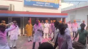 होली के गानों पर थिरके पुलिस अधिकारी