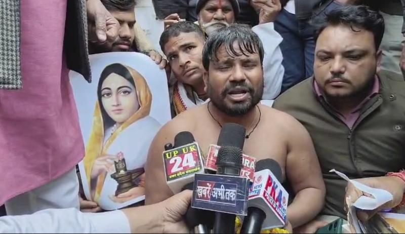 मथुरा में मणिकर्णिका घाट ध्वस्तीकरण के विरोध में धनगर समाज का प्रदर्शन