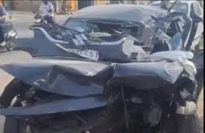 - क्षति: टक्कर इतनी शक्तिशाली थी कि कार का अगला हिस्सा पूरी तरह पिचक गया।