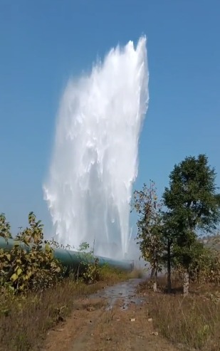 बलवाड़ा, खरगोन। जिले के बलवाड़ा में नर्मदा गंभीर लिंक परियोजना की पाइपलाइन में अचानक लीकेज होने से हड़कंप मच गया। एयर वाल फटने के कारण करीब 80 फीट ऊंचा पानी का फव्वारा उठ खड़ा हुआ और देखते ही देखते हजारों लीटर पानी नालों में बह गया।घटना के तुरंत बाद परियोजना की तकनीकी टीम मौके पर पहुंची और मोटर पंप को बंद कर दिया। लीकेज वाले हिस्से की मरम्मत की जा रही है। बताया गया कि एयर वाल में अचानक प्रेशर बढ़ने के कारण यह हादसा हुआ।खुशकिस्मती रही कि किसी को कोई चोट या जनहानि नहीं हुई। मौके पर मौजूद टीमें अब पाइपलाइन के बाकी हिस्सों की भी जांच कर रही हैं, ताकि भविष्य में इस तरह की तकनीकी गड़बड़ी से बचा जा सके।