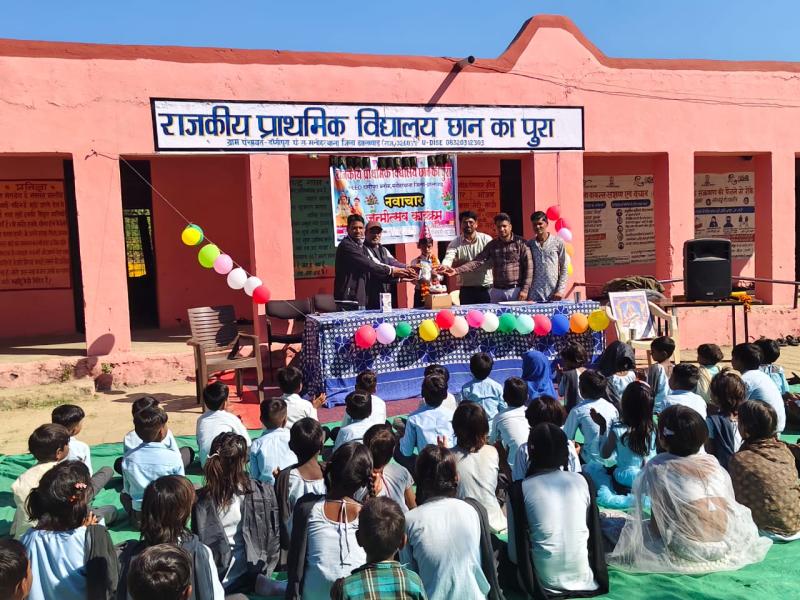 झालावाड़ जिले के मनोहरथाना ब्लॉक के पीईईओ क्षेत्र दांगीपुरा में शिक्षा को रोचक और बच्चों के लिए प्रेरणादायी बनाने के उद्देश्य से लगातार किए जा रहे नवाचारों के तहत राजकीय प्राथमिक विद्यालय छान का पुरा में कक्षा 1 के छात्र गोविंद का जन्मदिवस प्रार्थना सभा के दौरान बड़े हर्षोल्लास के साथ मनाया गया।प्रधानाध्यापक सरफराज अहमद ने बताया कि कार्यक्रम की शुरुआत में पीईईओ प्रतिनिधि तथा वरिष्ठ अध्यापक सत्यनारायण मीणा ने गोविंद का तिलक लगाकर और माल्यार्पण कर स्वागत किया। इसके बाद विद्यालय के सभी शिक्षकों ने बच्चे को माला पहनाकर आशीर्वाद दिया।जन्मदिवस समारोह के दौरान छात्र गोविंद ने अध्यापकों, अभिभावकों और ग्रामवासियों की उपस्थिति में केक काटा तथा विद्यालय के अन्य बच्चों को मिठाइयाँ व टॉफियाँ वितरित कीं। इस मौके पर विद्यालय के बच्चों ने आकर्षक सांस्कृतिक प्रस्तुतियाँ देकर माहौल को उत्साहपूर्ण बना दिया।कार्यक्रम में विद्यालय के शिक्षक राधेश्याम मीणा, हितेश भाट सहित बड़ी संख्या में अभिभावक और ग्रामवासी उपस्थित रहे। ग्रामवासियों ने विद्यालय में बच्चों के जन्मदिवस मनाने की इस पहल की सराहना की।प्रधानाध्यापक सरफराज अहमद ने बताया कि आगे से विद्यालय के सभी बच्चों का जन्मदिवस इसी तरह धूमधाम और खुशी के माहौल में मनाया जाएगा। इससे बच्चों में विद्यालय के प्रति अपनापन, उत्साह और नियमितता बढ़ेगी।