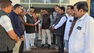 नई परिवहन नीति के विरोध में निजी बस संचालकों का प्रदर्शन, संभाग आयुक्त को सौंपा ज्ञापन