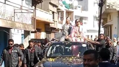 सिनेमा कलाकार अंकिता लोखंडे और विक्की जैन ने नेहा अलकेश जैन के समर्थन में देवरी नगर में किया रोड शो
