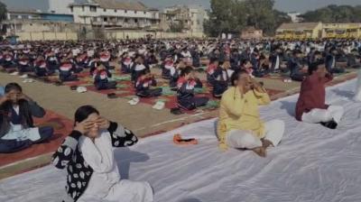युवा दिवस पर उत्कृष्ट स्कूल मैदान में सामूहिक सूर्य नमस्कार, 1500 से अधिक लोगों की सहभागिता