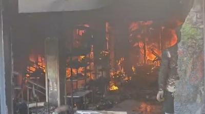 टीकमगढ़ के सिविल लाइन स्थित शोरूम में भीषण आग, लाखों का सामान जलकर खाक