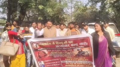 बांग्लादेश में हिंदुओं पर अत्याचार के विरोध में श्री राम उत्सव समिति का प्रदर्शन