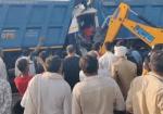 NH-48 पर भीषण हादसा, खड़े डंपर से टकराया दूसरा; चालक केबिन में फंसा