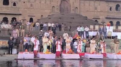 खरगोन जिले के ऐतिहासिक महेश्वर में शनिवार को राज्यपाल मंगुभाई पटेल ने विधि विधान के साथ अहिल्या घाट पर मां भगवती नर्मदाष्टक आरती अर्चना की और मां नर्मदा को पुष्पांजलि...