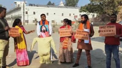 अनिरुद्ध आचार्य की टिप्पणी के विरोध में हिंदू महासभा का प्रदर्शन, पुतला दहन कर मीडिया के समर्थन में लगाए नारे