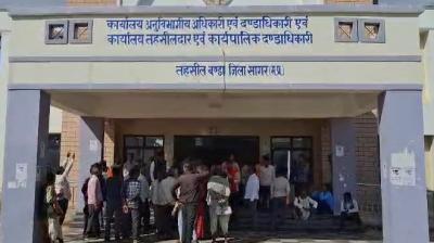 नहर का पानी नहीं मिलने से नाराज़ किसान, तहसील कार्यालय के बाहर धरने पर बैठे