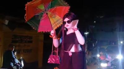 छाता और मोबाइल वाली होलिका बनी आकर्षण का केंद्र,