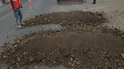 एम.पी.आर.डी.सी. नागदा अंतर्गत शोल्डर कार्य शुरू, संबंधित अधिकारियों ने किया मार्ग का निरीक्षण